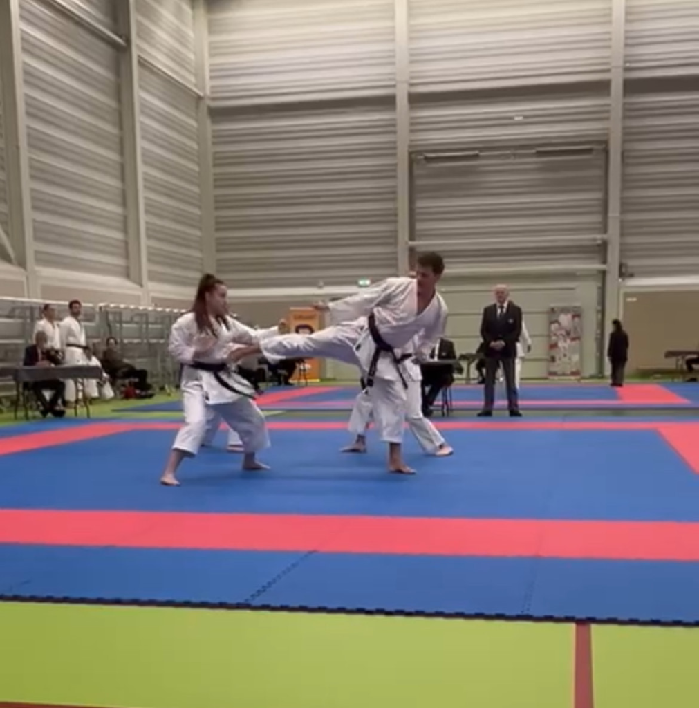 De zelfstandige onderdelen had ik al voor een langere tijd geoefend, maar Selin en ik zijn pas na de zomervakantie begonnen met het instuderen van de bunkai. Gelukkig zijn we goed op elkaar ingespeeld en pakten we het snel op.